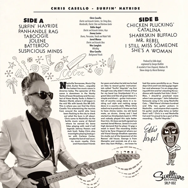 MUSICIANS: Chris Casello – electric and acoustic guitars, six string bass, mandocello, electric sitar and baritone guitar • Eddie Angel – electric and acoustic guitars, keys • Jimmy Lester – drums, percussion, vocals and rebel yells • Jared Manzo – electric and acoustic bass • Wes Langlois – whistling • Elise Casello – background vocals